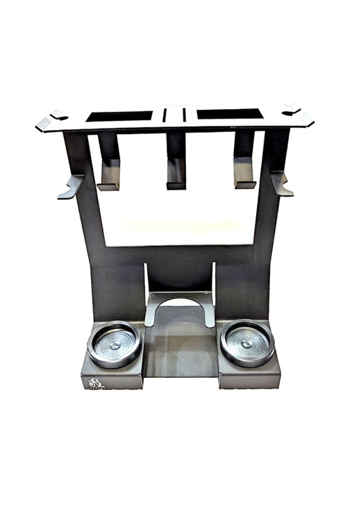 - جایگاه فنجانها و ابزارها: دو محفظه گرد در قسمت پایین برای قرار دادن فنجان یا ابزارهای کوچک در نظر گرفته شده است.
