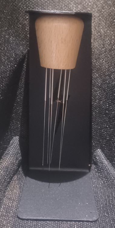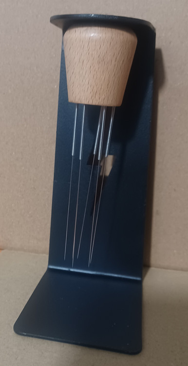 جنس میلهها: میلههای نیدل از استیل ضدزنگ (Stainless Steel) یا مواد مقاوم ساخته شدهاند تا زنگ نزنند و بهمرور دچار خوردگی نشوند. نازکی این میلهها به پخش دقیق و یکنواخت پودر قهوه کمک میکند.